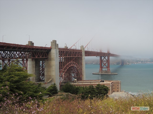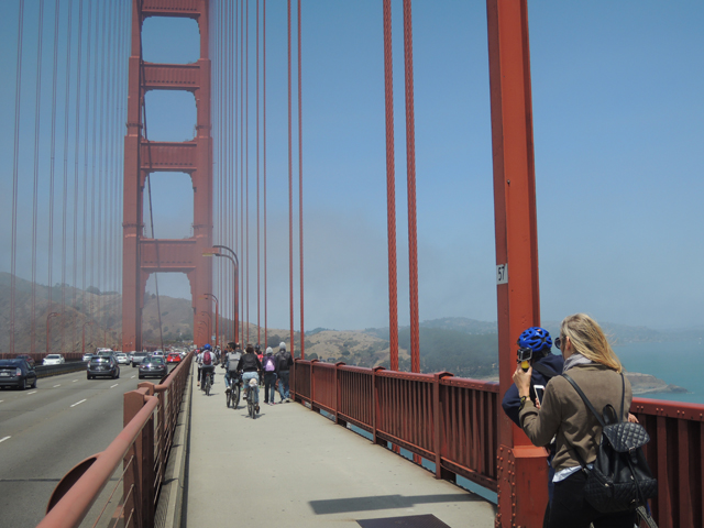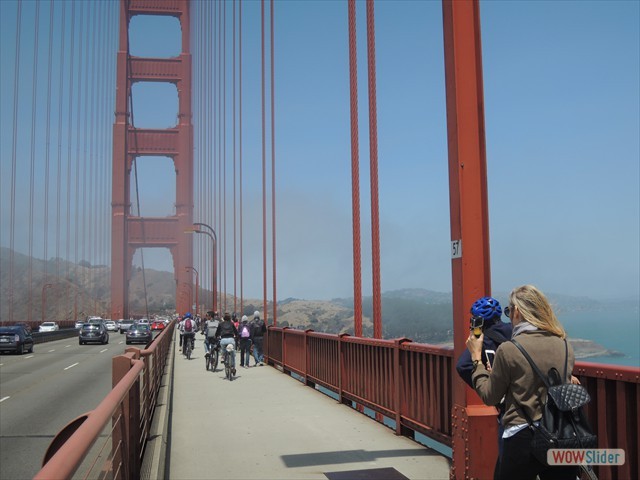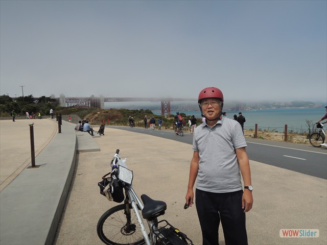 San FransiscoではFisherman’s Wharfでレンタサイクルを借り、海岸線に沿ってサイクリングロードを10Kmほど走るとGolden Gate Bridgeに着いた。少し曇ってはいたがGolden Gate Bridgeを自転車で渡り、ビスタポイントで少し休憩し、また海岸に沿ってBridge Way通りを走りSausalito(ソーサリト)の町に着いた。フェリーに乗るまで1時間以上かかったがフェリーに乗ることが出来てSan Fransiscoに戻った。