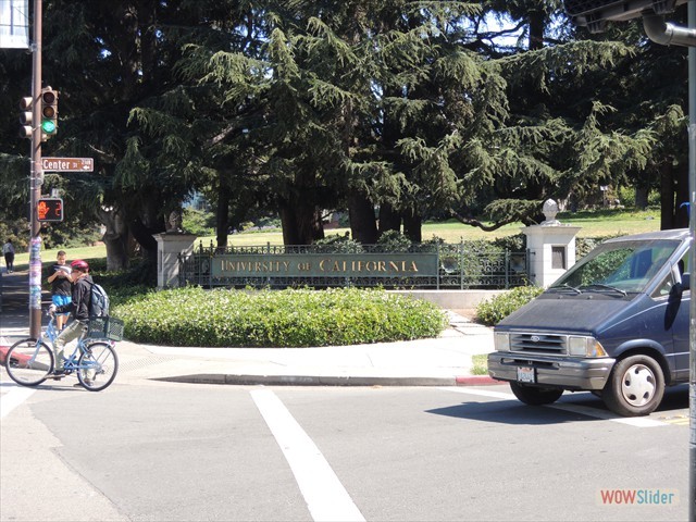 次の日はBART(Bay Area Rapid Transit)に30分乗りBerkeleyに来た。UCB(カリフォルニア大学バークレー校)のキャンパスは大きな公園のようで無数の大きな木の間に小さな川も流れていてゆったりと時間が流れて研究や勉強にはとてもすばらしい環境である。また大学の前のBerkeleyの街はこじんまりとして落ち着いた街である。