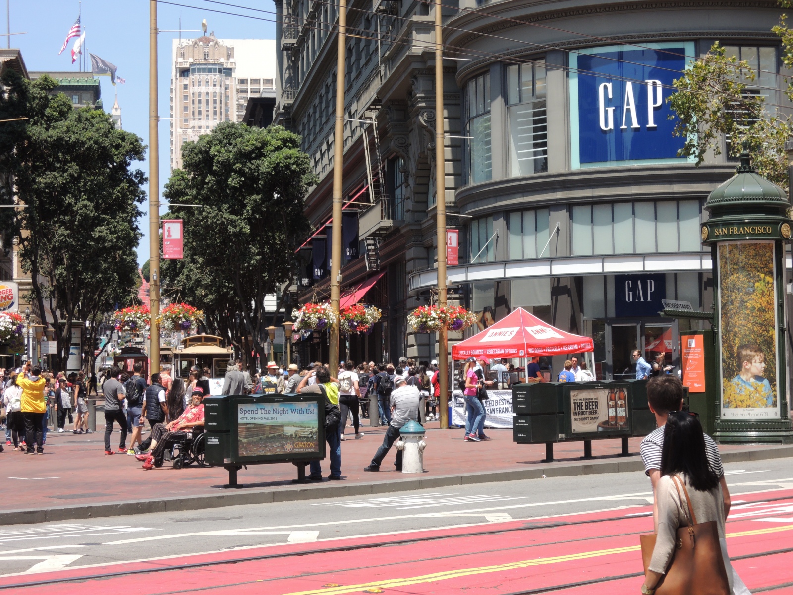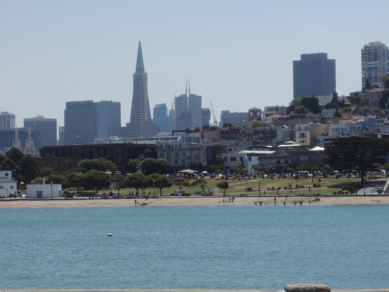 San Fransiscoの街では7月でも朝夕は気温が低く日本の4月頃の気温であり、多くの人がコートや長袖で歩いている。しかし昼間はカリフォルニアの夏の日差しで一気に日焼けとなってしまった。