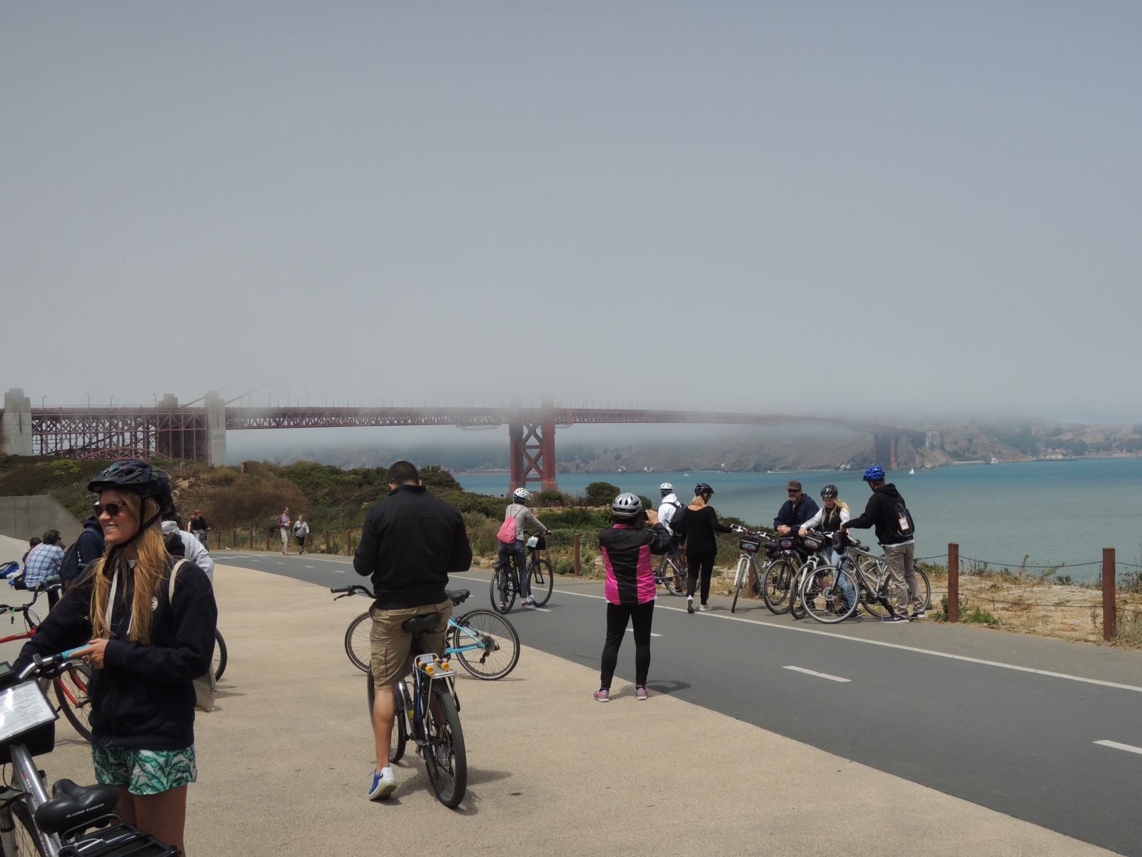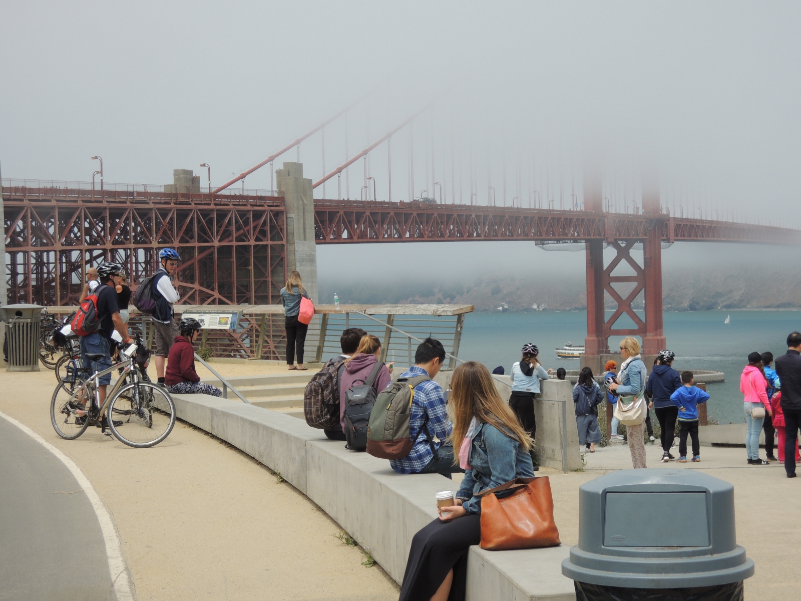San FransiscoではFisherman’s Wharfでレンタサイクルを借り、海岸線に沿ってサイクリングロードを10Kmほど走るとGolden Gate Bridgeに着いた。少し曇ってはいたがGolden Gate Bridgeを自転車で渡り、ビスタポイントで少し休憩し、また海岸に沿ってBridge Way通りを走りSausalito(ソーサリト)の町に着いた。フェリーに乗るまで1時間以上かかったがフェリーに乗ることが出来てSan Fransiscoに戻った。