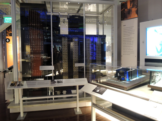 館内はテーマごとに展示されていて、計算尺、そろばん、手回し計算機から始まり、次のコーナーではパンチカードシステム、ENIACなど初期のコンピュータが展示されている。