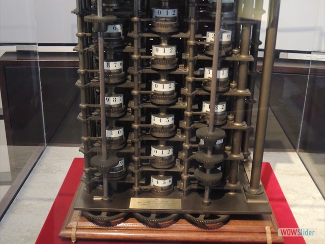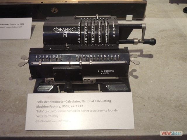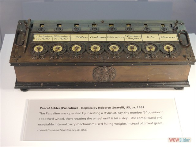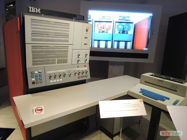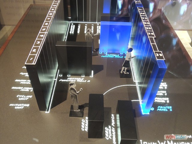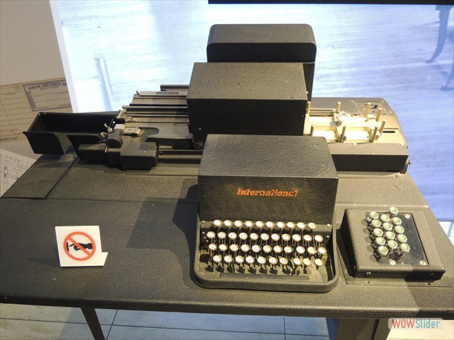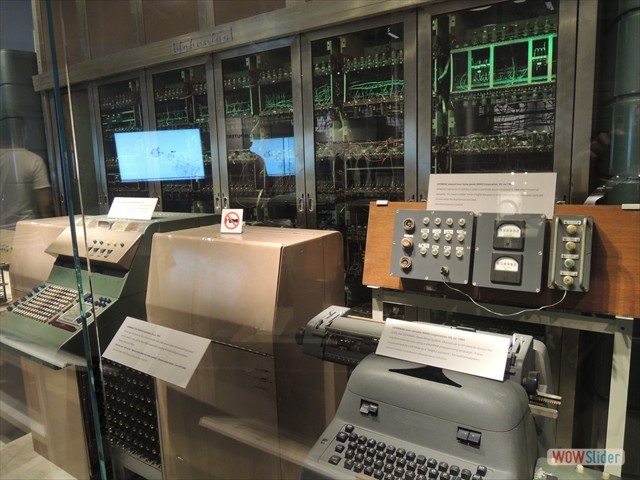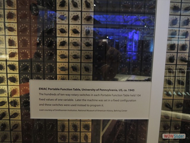 館内はテーマごとに展示されていて、計算尺、そろばん、手回し計算機から始まり、次のコーナーではパンチカードシステム、ENIACなど初期のコンピュータが展示されている。