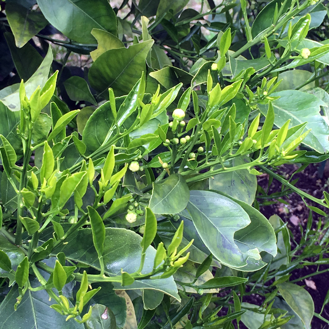 夏みかんの木にもつぼみができていました。