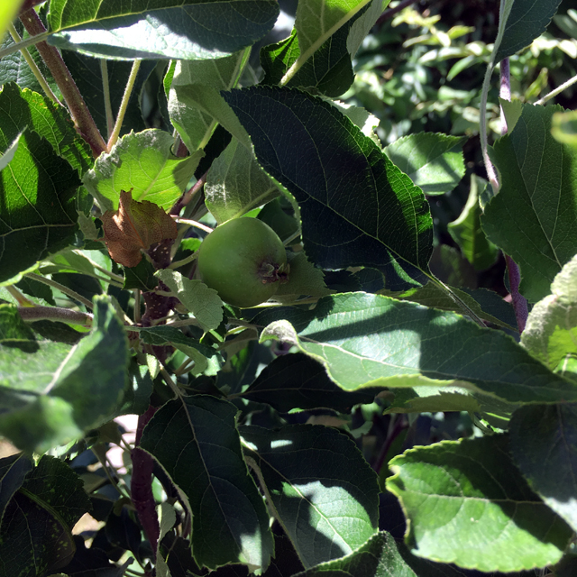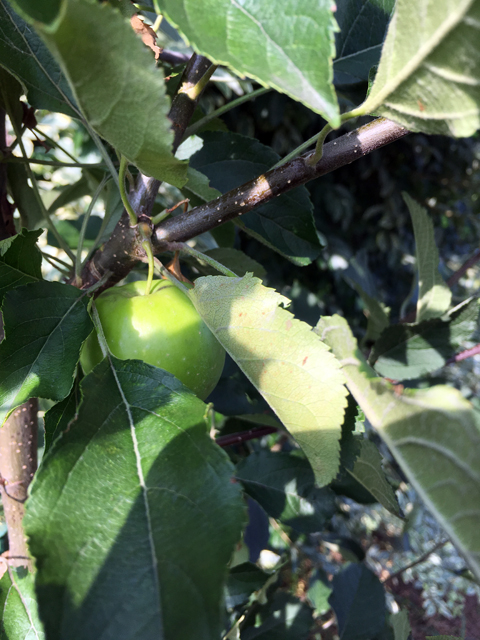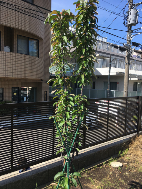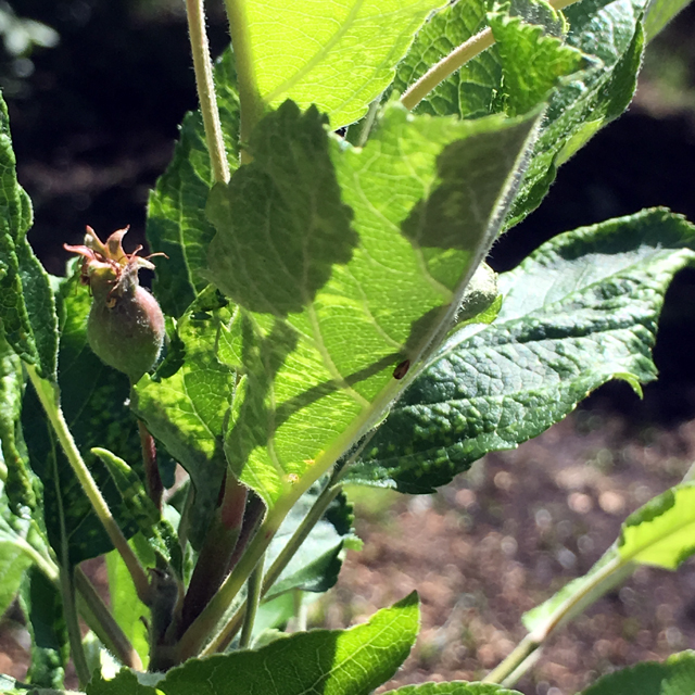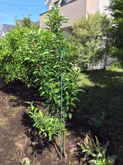 ミニりんご「メイちゃんの瞳」と「ボレロ」は2m以上に大きくなりました。ミニりんご「アルプス乙女」には小さな実が2つ成りました。