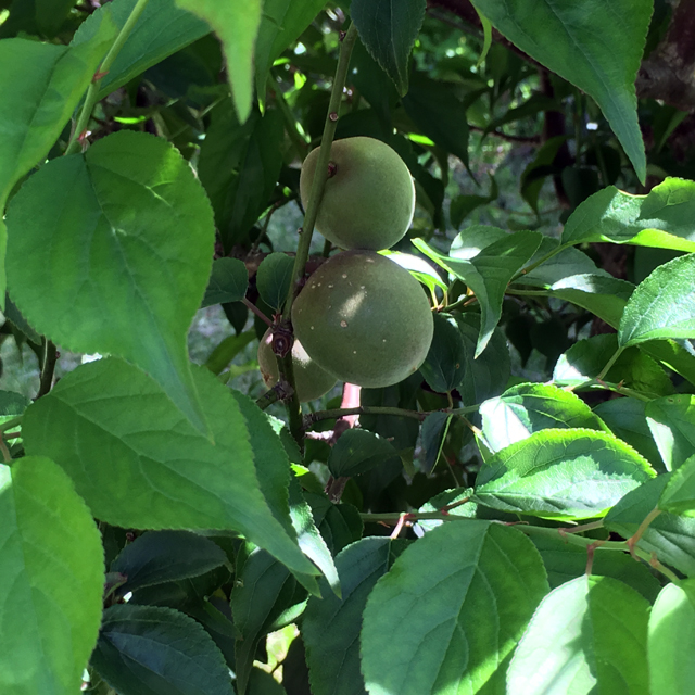 今年も梅には大きな実がなっています。夏みかんは満開で周囲には甘い匂いが漂っています。