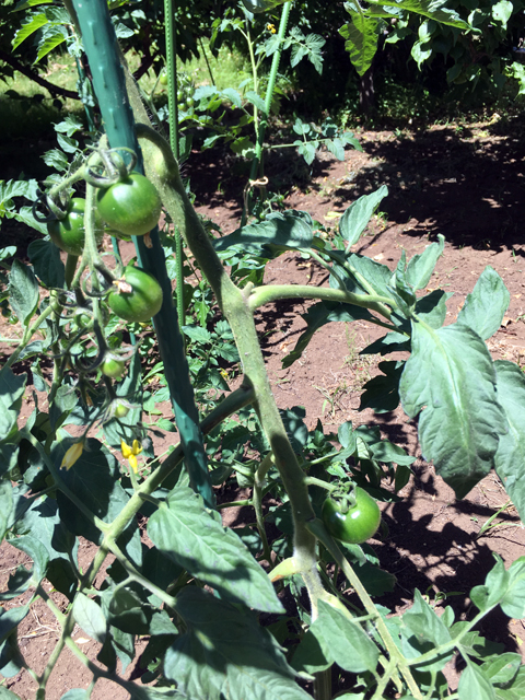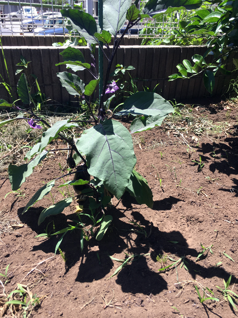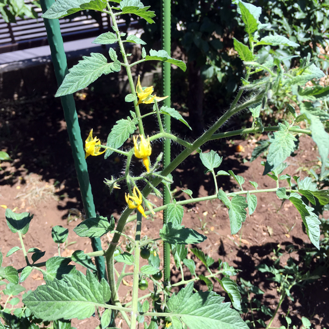 畑にトマトとミニトマト、ナスの苗を植えました。夏みかんも小さな実がたくさん成っています。