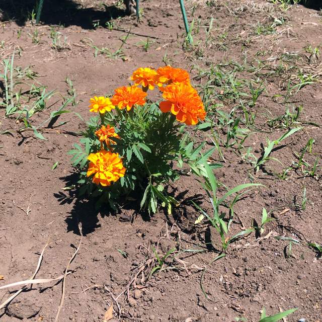 マリーゴールドと百日花を植え、きれいな花が咲いています。