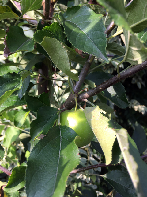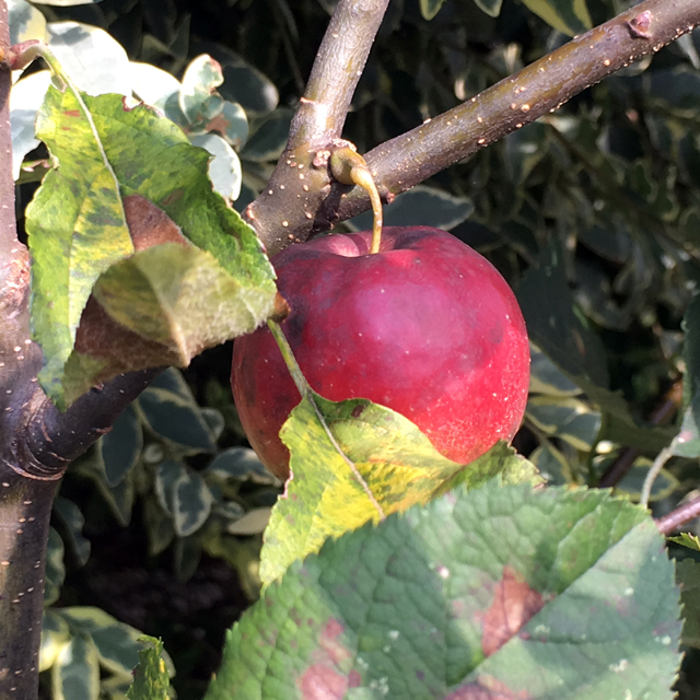 ミニりんごの2つの実は大きくなりました。大きいと言ってもミニりんごですから直径5cmくらいです。