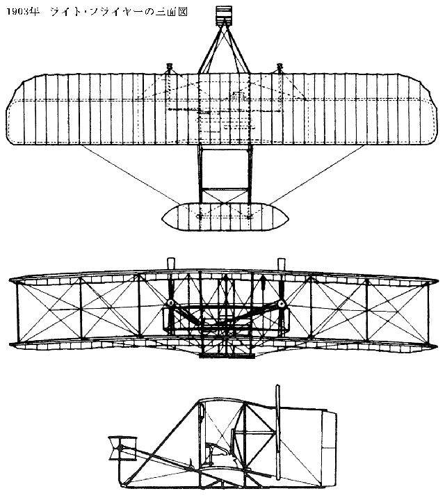 1903年12月17日にノースカロライナ州キティホーク南約6.4kmのキルデビルヒルズ付近にて初飛行に成功した。計4回の飛行を行い4回目の飛行では59秒間で260mの飛行をした。