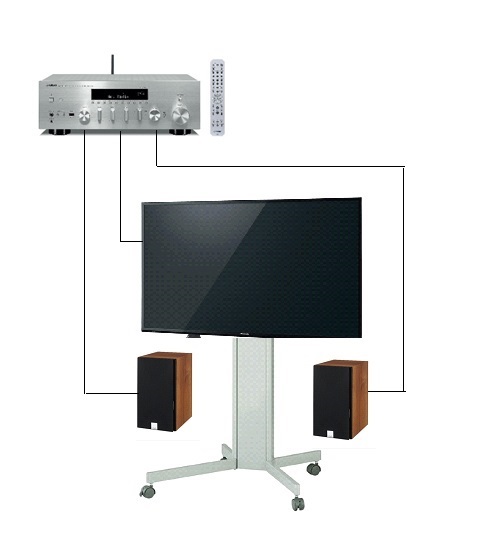 TVとはTOSリンク(光デジタル)で接続し、このレシーバーでデジタル音声出力をアナログ音声に変換しスピーカーを駆動します。