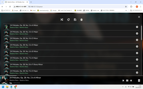 このオーディオシステムの操作は、iPhoneのアプリVolumioを使ったり、WindowsのブラウザーChromeにRaspberry Pi2のプライベートipアドレスを入力し(http://192.168.XXX.XXX/)、ショートカットとして登録しておき、Chromeを使ったりして、楽曲の選択、再生や停止など行います。