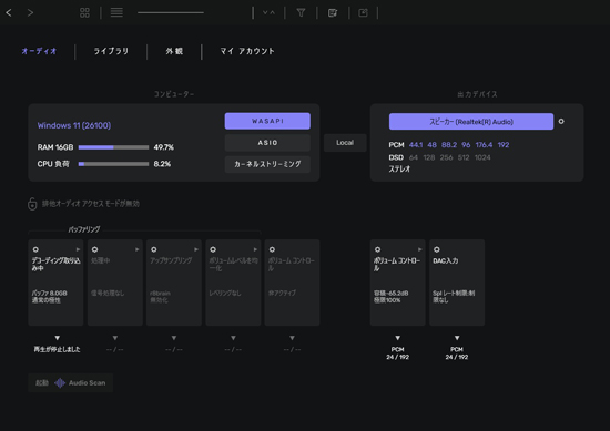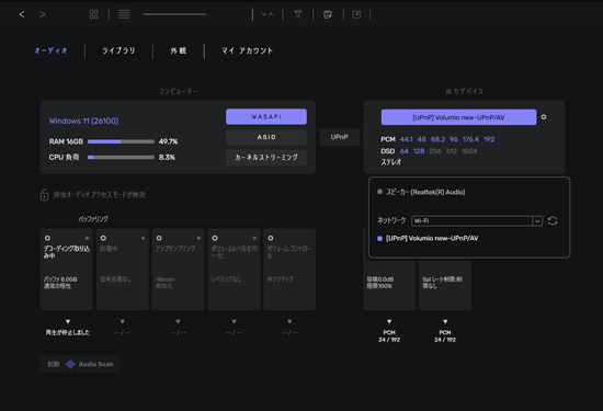 これで、D/AコンバーターがDSDに対応していれば、DSDファイルが再生されます。